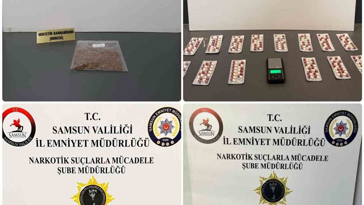 Edinilen bilgilere göre, Samsun İl Emniyet Müdürlüğü Narkotik Suçlarla Mücadele Şube Müdürlüğü ekipleri, İlkadım, Canik ve Çarşamba ilçelerinde sokak satıcılarına yönelik operasyon düzenledi. Operasyonlarda bin 396 adet sentetik ecza, 9,60 gram sentetik kannabinoid, 2,92 gram metamfetamin ve 4,45 gram esrar ele geçirildi. Ayrıca, ‘uyuşturucu madde kullanmak’ suçundan hakkında 4 yıl 2 ay kesinleşmiş hapis cezası bulunan bir şahıs yakalandı.