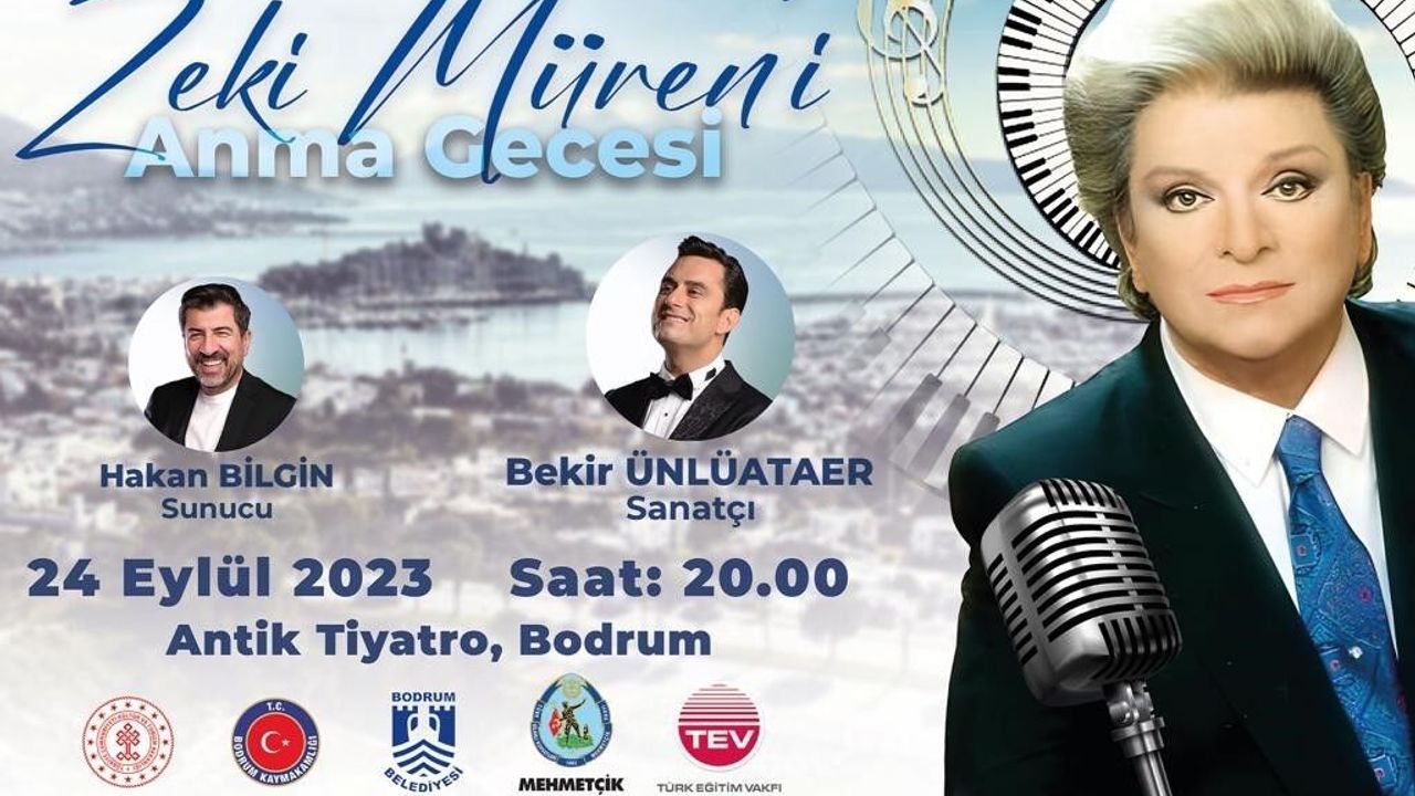 Bursa’da ise kabri başında dualar eşliğinde anılacak olan sanatçı için, sonrasında Emir Sultan Camii’nde mevlit okutulacak ve aynı gün Zeki Müren Güzel Sanatlar Lisesi’nde anma etkinliği gerçekleştirilecek. Zeki Müren sevenlerin büyük bir özlemle beklediği, Bodrum Antik Tiyatro’da yapılacak olan konserde, Klasik Türk Müziği’nin sevilen sanatçısı Bekir Ünlüataer sahne alacak, gecenin sunuculuğunu ise ünlü sinema ve tiyatro oyuncusu Hakan Bilgin üstlenecek.