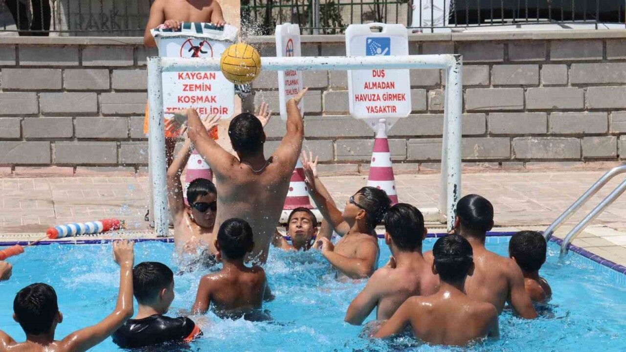 Şanlıurfa Büyükşehir Belediyesi’ne ait yüzme havuzlarından ücretsiz yararlanan çocuklar, düzenlenen su topu etkinliğinde doyasıya eğlendi. Etkinlikte çift kale maç yapan çocuklar, yaz sıcağında hem serinledi hem de keyifli vakit geçirdi.