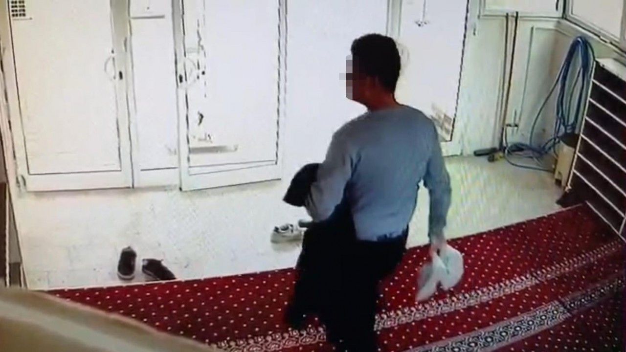 Şanlıurfa’nın Karaköprü ilçesinde camide yaşanan hırsızlık olayı güvenlik kamerasına yansıdı. Etrafı kontrol ettikten sonra ayakkabıları ve askıda bulunan montu alan zanlı hızla uzaklaştı.