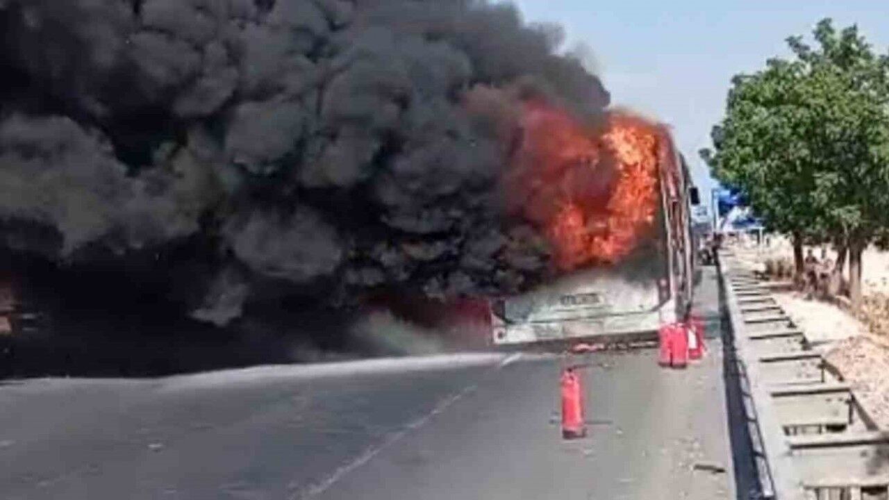 Şanlıurfa’da aşırı sıcaklık nedeniyle hararet yapan şehir içi yolcu otobüsü alev alev yandı. Çıkan yangında yolcular son anda kurtarıldı.