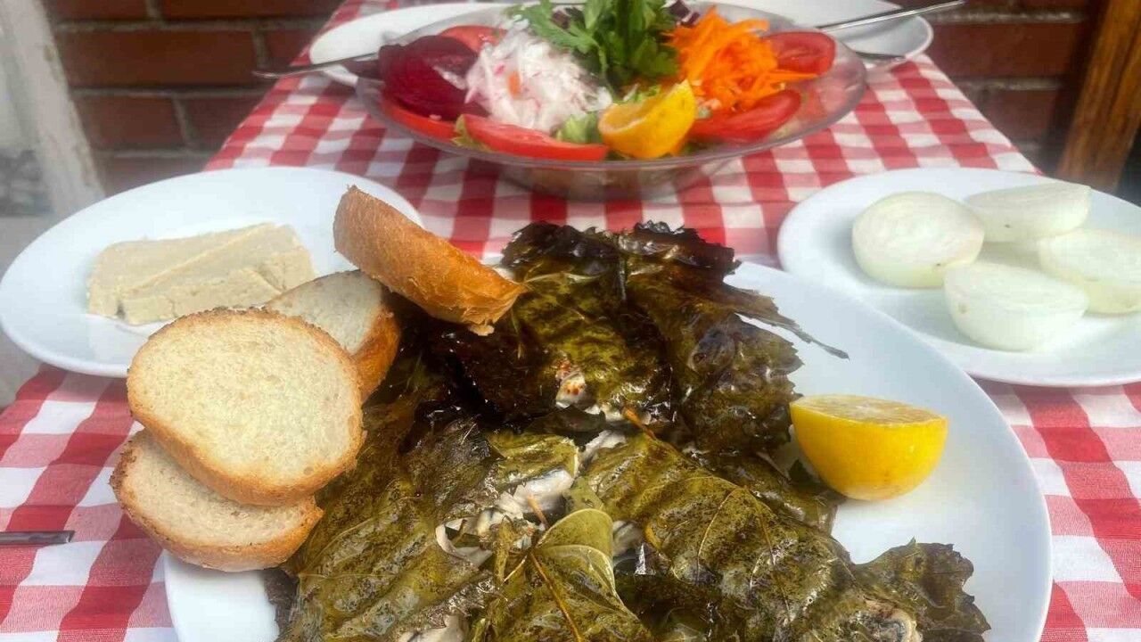 Bursa’nın Şehreküstü Meydanı yakınlarında küçük bir dükkanda balık pişirip satılan işletmede bu dönemde asma yaprağına sarılı sardalya çok tercih ediliyor.