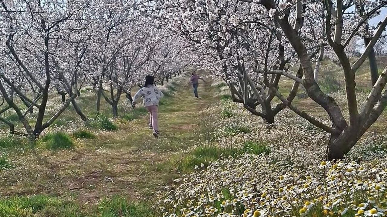Mahalle sakinlerinden Halil Uygun, yıllar önce İlçe Tarım ve Orman Müdürlüğü tarafından bodur badem fidanlarının bölgeye dikildiğini belirterek, 'Yıllar önce İlçe Tarım ve Orman Müdürlüğü tarafından elle kırılabilen bodur badem fidanları dağıtılmıştı. Tarla komşumuz da 5-6 dekarlık tarlasına bu fidanlardan dikmişti. Şimdi tüm badem ağaçları çiçek açtı. Toprak yeşerdi, papatyalar açtı. Ortaya çıkan manzara bizleri dinlendiriyor. Buraya ailece gelip fotoğraflar çekiliyoruz.' dedi.