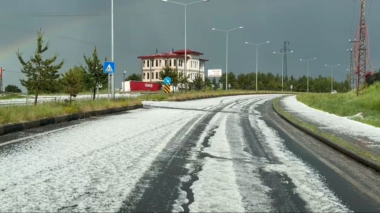 Kars’ın Sarıkamış ilçesinde sağanak sonrası etkili olan dolu, etrafı beyaza bürüdü. İlçede akşam saatlerinde başlayan sağanak, havanın soğumasıyla doluya dönüştü. Yaklaşık 10 dakika etkili olan sağanak yağmur caddeleri göle dönüştürürken, havanın soğumasıyla birlikte yağan dolu etrafı beyaza bürüdü.