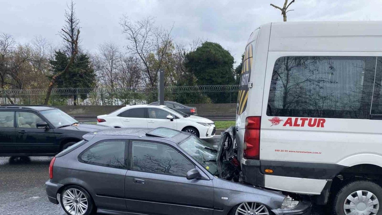 Sarıyer’de otomobil, yağışın etkisiyle kayganlaşan yolda kontrolden çıkarak park halindeki servis aracına çarptı. Kazada 1 kişi yaralandı.