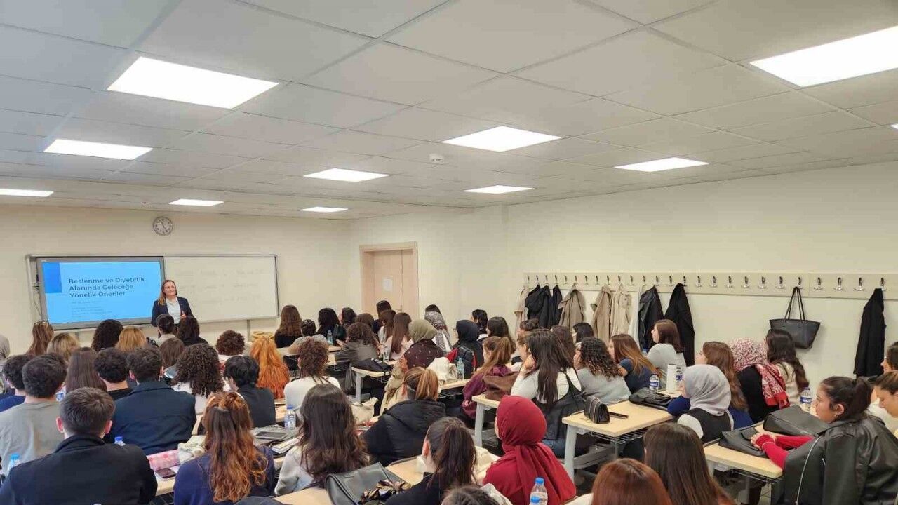 Hacettepe Üniversitesi SBF Beslenme ve Diyetetik Bölümü Öğretim Üyesi Prof. Dr. Derya Dikmen etkinlikte, Beslenme ve Diyetetik Bölümü 1’inci ve 2’nci sınıf öğrencilerine bu alandaki geçmişten günümüze olan değişimleri ve güncel trendleri aktardı. Konuşmasında özellikle nutrigenomik, mikrobiyota, fonksiyonel besinlerin yanı sıra artık yapay zekanın da ön plana çıktığından bahseden Dikmen, öğrencilere yapay zekayı öğrenmek ve doğru kullanmak kadar yabancı dil konusunda da kendilerini geliştirmelerinin hala önemli bir ihtiyaç olduğundan söz etti. Etkinlik, soru-cevap kısmının ardından sona erdi.