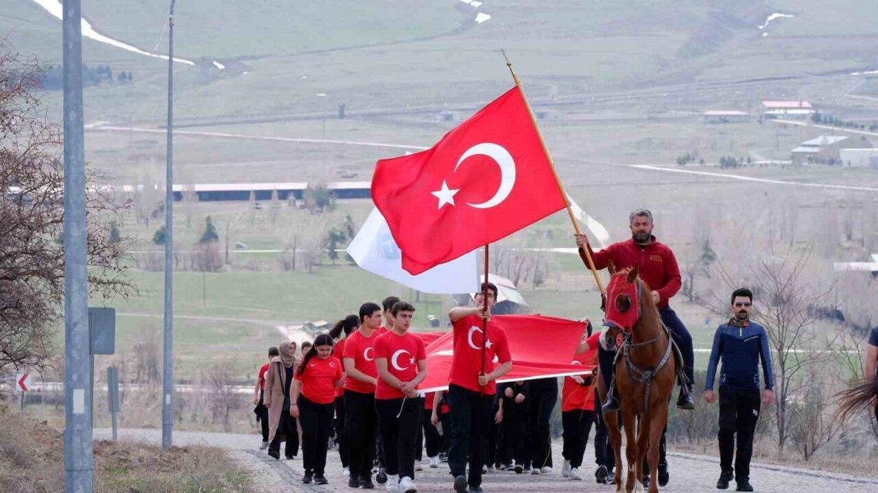 Erzurum’da bir grup ortaokul öğrencisi, öğretmenleri ile birlikte şehitleri anmak ve Gazze için dua etmek amacıyla Aziziye Tabyası’na yürüyüş yaptı.