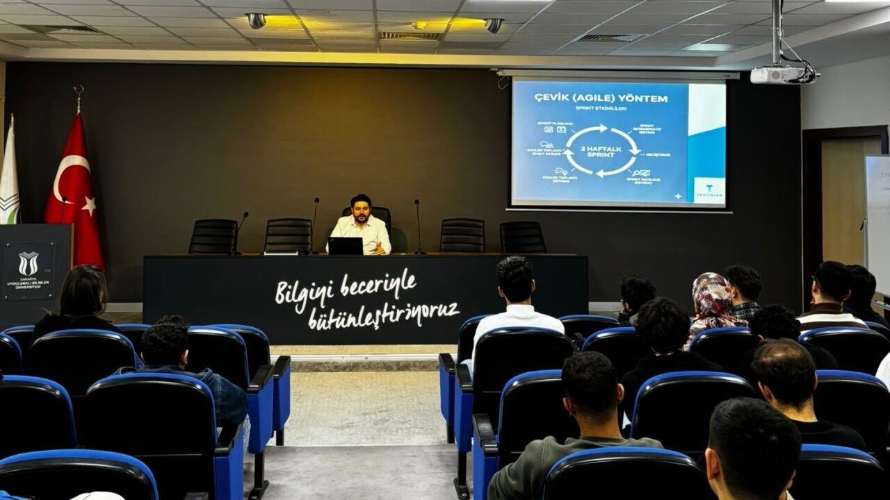 Sakarya Uygulamalı Bilimler Üniversitesi (SUBÜ) Bilişim Teknolojileri Topluluğu ile Teknofest Topluluğu tarafından düzenlenen ‘Sektörle Buluşma’ etkinliği, Rektörlük Konferans Salonu’nda gerçekleştirildi. Etkinliğe Testinium firmasından Kıdemli Yazılım Kalite Güvence Mühendisi Kerem Metin konuk oldu. Öğrencilerin sektör temsilcileriyle bir araya gelerek güncel teknolojik gelişmeleri yakından tanımaları ve kariyer planlamalarına yön vermeleri amacıyla gerçekleştirilen etkinlikte yazılım test süreçleri, kalite güvence yöntemleri gibi konular ele alındı. Kerem Metin konuşmasında, yazılım dünyasının hızla değişen dinamiklerine dikkat çekerek sektördeki güncel eğilimler, kariyer fırsatları ve profesyonel gelişim yolları hakkında öğrencilere bilgi verdi.