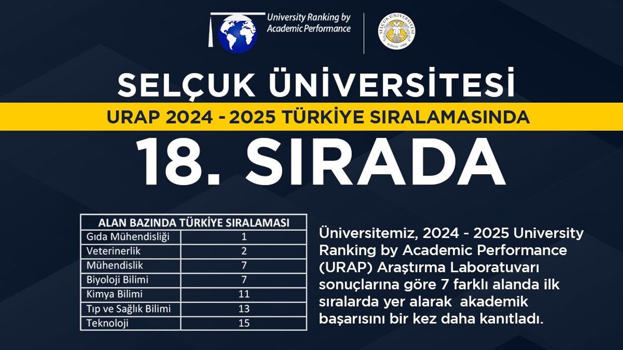 Selçuk Üniversitesi, URAP (University Ranking by Academic Performance) 2024-2025 Dünya Sıralaması’nda Türkiye üniversiteleri arasında 18’inci olarak önemli bir başarı elde etti.