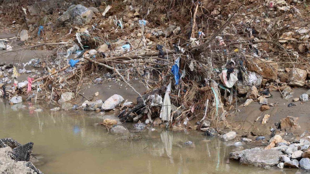 Adana'nın Feke ve Saimbeyli ilçelerinde meydana gelen sel ve heyelan sonrası biriken çöpler dikkat çekti.