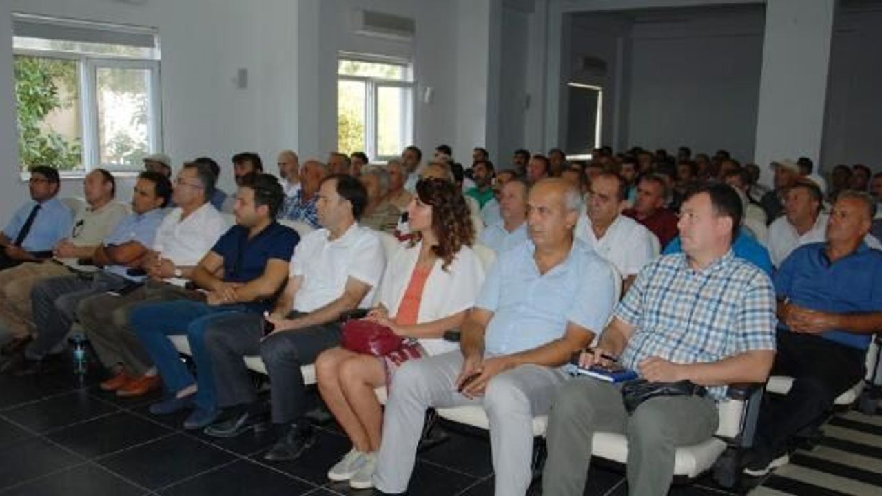 İlçe Milli Eğitim Şube Müdürü Hayri Sertgöz'ün konuşmasının ardından servis şoförleri ve okul müdürlerine