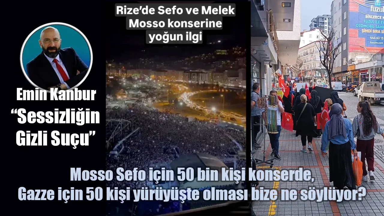 Aynı şehirde, aynı gün, 50.000 gencin bir konsere akması tesadüf değil; ama Gazze için düzenlenen yürüyüşe katılanların sayısının 50 kişiyi aşmaması düşündürücü ve utandırıcı olsa gerek.