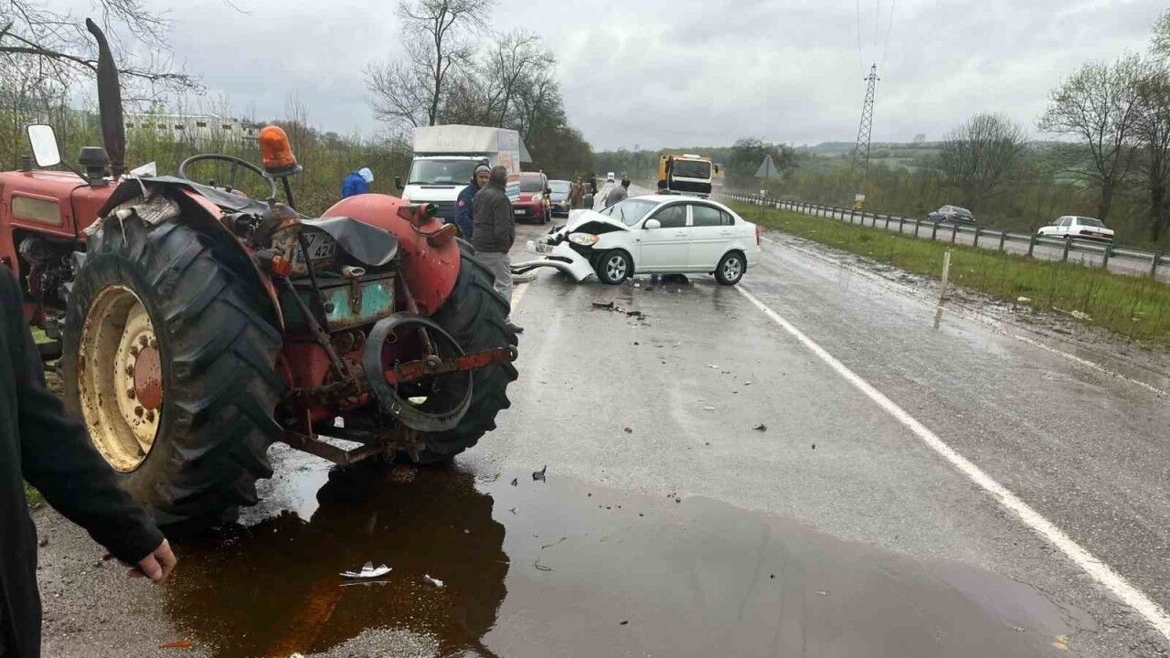 Zonguldak’ın Çaycuma ilçesinde seyir halinde olan bir otomobil, önündeki traktöre arkadan çarpması sonucunda trafik kazası meydana geldi. Kazada 2 kişi yaralandı.