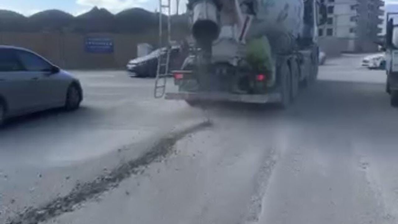 Hatay’da seyir halindeyken yola beton döken mikserin o anları kameraya yansıdı.