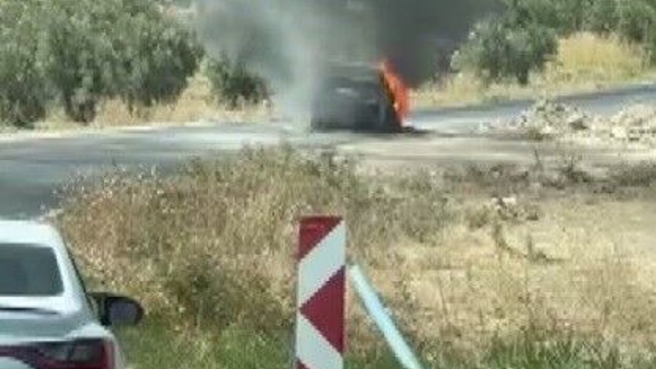 Hatay’ın Altınözü ilçesinde seyir halindeyken alevlere teslim olan otomobil yanarak kullanılamaz hale geldi.