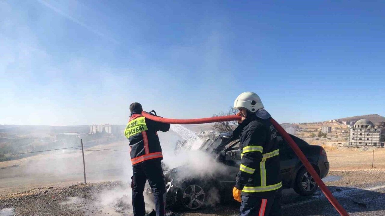 Adıyaman’ın Besni ilçesinde seyir halindeki bir otomobil alev alarak yandı.