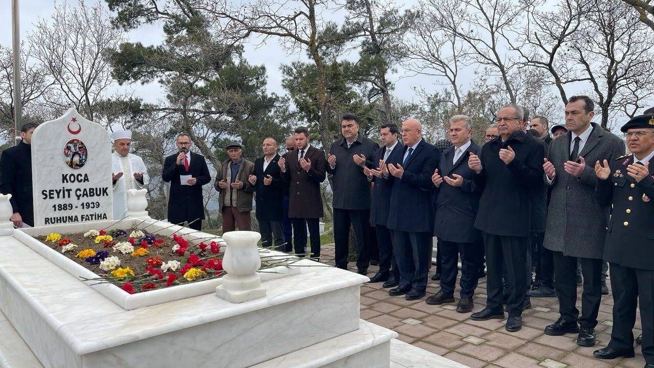 AK Parti Balıkesir Milletvekili İsmail Ok ise yaptığı konuşmada, 'Çanakkale Zaferi'nin 111. yılında, tarihin akışını değiştiren kahramanlarımızdan Koca Seyit'in anıt mezarı başındayız. Başta Koca Seyit olmak üzere tüm şehitlerimizi rahmet ve minnetle anıyoruz. Bugün bu bayrak dalgalanıyorsa, ezanlar okunuyorsa ve özgür bir şekilde yaşıyorsak bunu başta Mustafa Kemal Atatürk olmak üzere tüm şehit ve gazilerimize borçluyuz' ifadelerini kullandı.