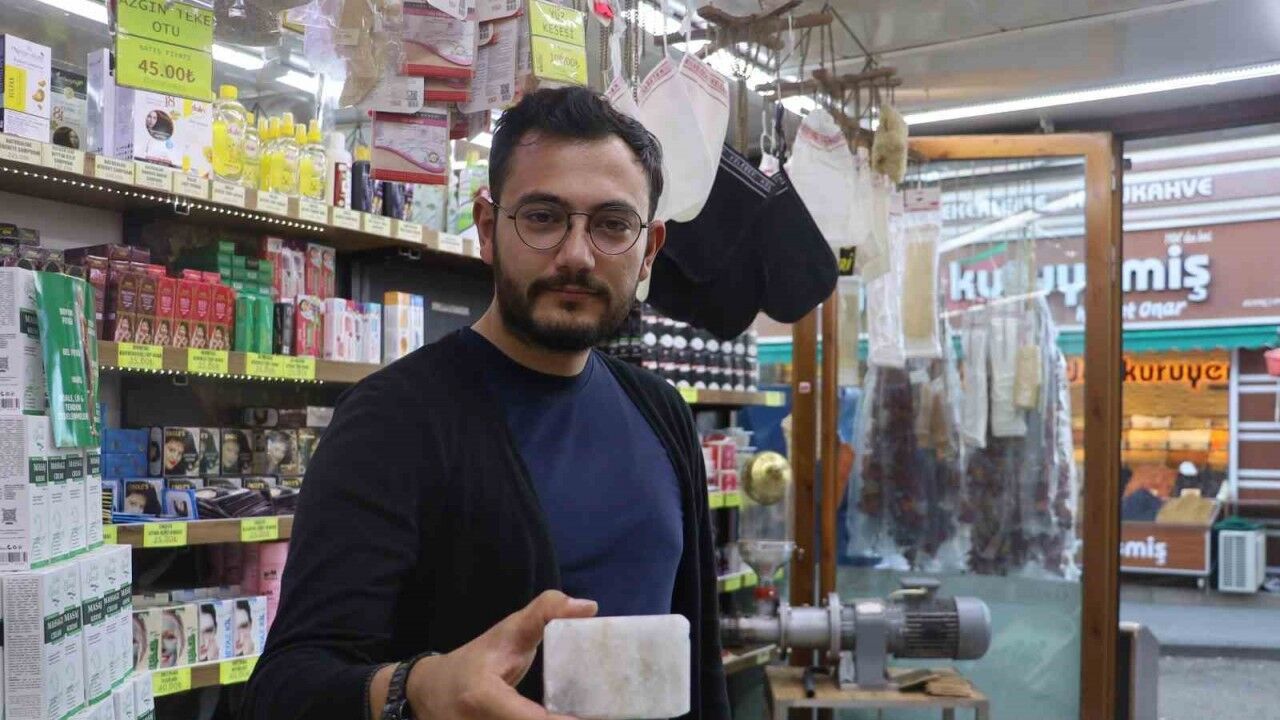 Yerin metrelerce altından çıkarılan Himalaya tuzunun bir kalıp içinde sıkıştırılması sonucu elde edilen ve içeriğinde hiçbir katkı bulundurmayan tamamen doğal içeriğe sahip tuz sabunu, yaz aylarında daha çok talep ediliyor. Sivilcelere, ciltteki gözeneklerin açılmasına, yaz aylarında artan terlemeye, cildin temizlenmesine, egzama, sedef ve mantar gibi deri hastalığına da iyi gelmesiyle bilinen tuz sabununun tanesi köpürmeyen yapısıyla 65 liradan satılıyor. Tuz sabununun banyo yaparken de kullanılabileceğini belirten aktar Orhun Özfidancı, "Vücudunuza uyguladıktan bir süre sonra da bol su ile yıkamanız gerekmektedir" şeklinde konuştu.