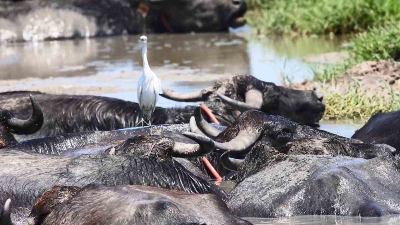 Kızılırmak Deltası’nda sıcaklardan kaçanlar sadece mandalar değil. Balıkçıllar, leylekler, flamingolar ve daha birçok yaban hayvanı da göllere girerek serinlemeye çalışıyor. Bu durum, deltanın zengin biyoçeşitliliği ve doğal yaşamın korunmasının ne kadar önemli olduğunu bir kez daha gösterdi.