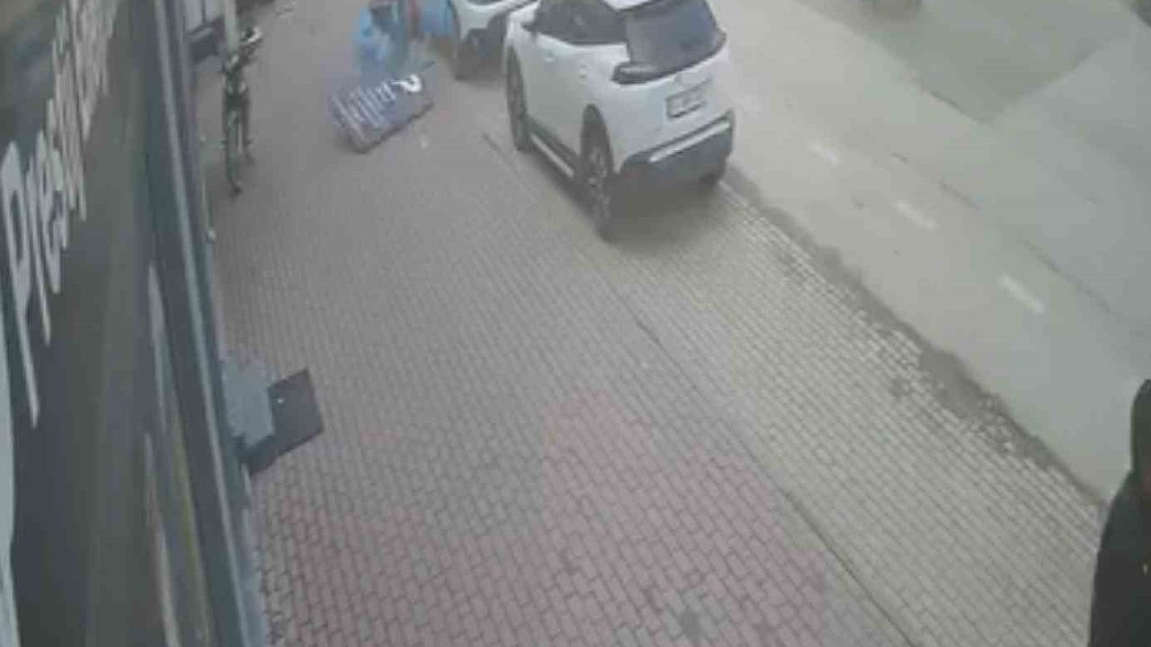 Aynı anlarda lodosun etkisiyle bir çöp kutusunun da sürüklendiği görüldü. Yaşanan tehlikeli anlar, çevredeki bir iş yerinin güvenlik kamerasına yansıdı.