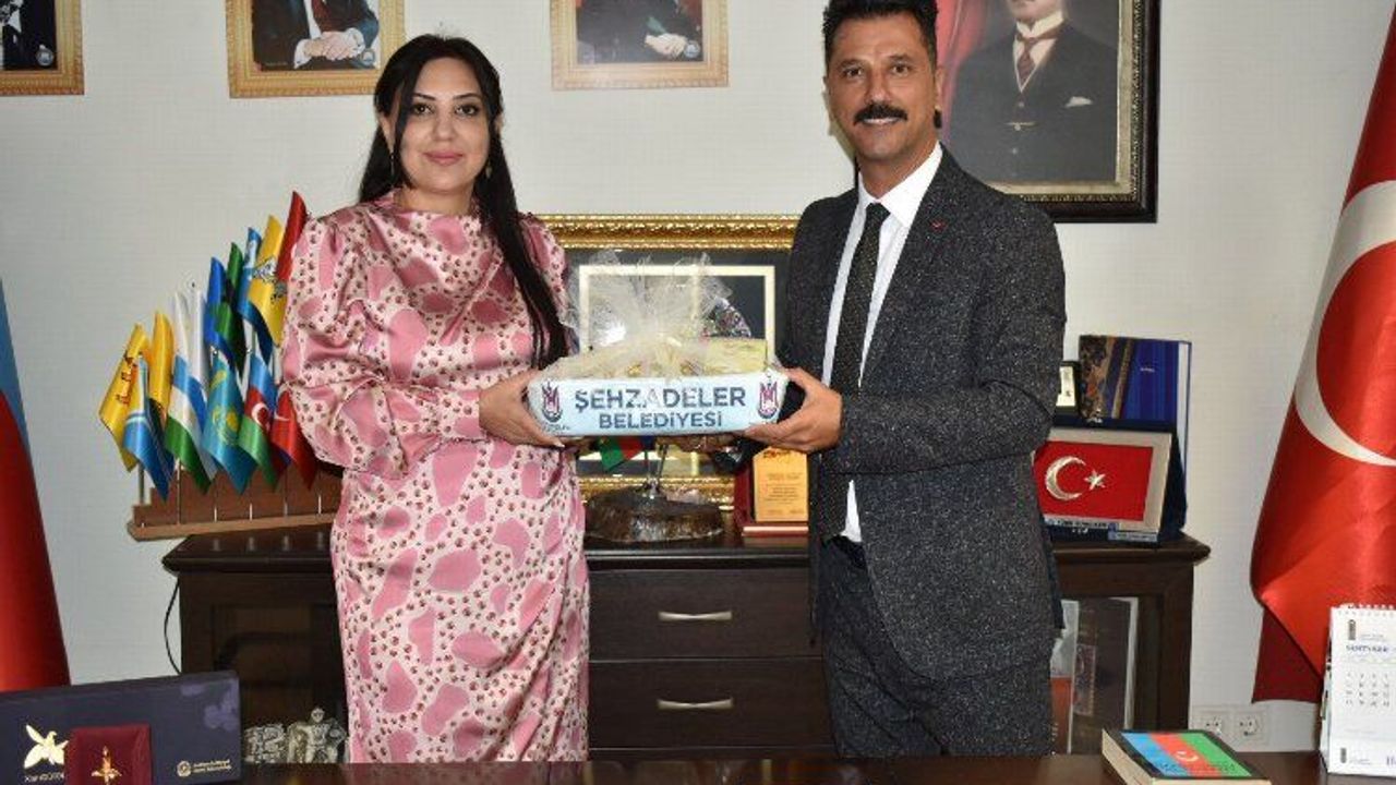 Siirt Şirvan Belediye Başkanı Kürdoğlu Muradov, Manisa Azerbaycan Kültür ve Dayanışma Derneğini ziyaret etti.MANİSA (İGFA) - Manisa Azerbaycan Kültür ve Dayanışma Derneği Başkanı Şentürk Hoşgül ve yönetim kurulu üyelerini Şirvan Vali Yardımcısı Aynur Ferzaliyeva, Şirvan Belediye Başkanı Kürdoğlu Muradov, İstanbul Başkonsolosluğu Konsolos Yardımcısı Sevinç Süleymanova, Vali Asistanı İsa Namazov ve Ceyhun Necefov ziyaret etti. Ziyarette Manisa Azerbaycan Kültür ve Dayanışma Derneği Başkanı Şentürk Hoşgül dernek çalışmaları hakkında bilgiler verdi.
