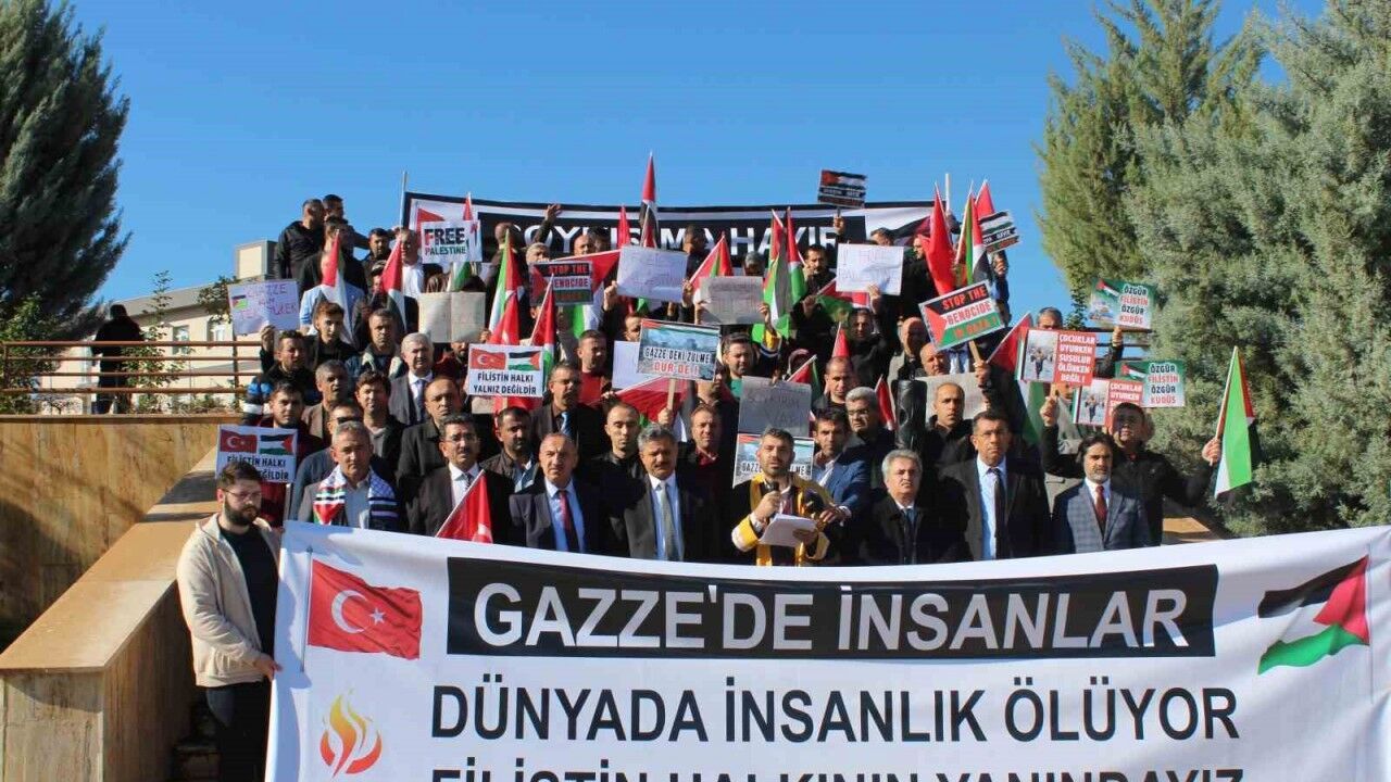 Siirt’te bir araya gelen üniversite öğrencileri ve akademisyenler, İsrail’in Filistin’de gerçekleştirdiği saldırılara tepki göstererek, Filistin’e destek verdi.