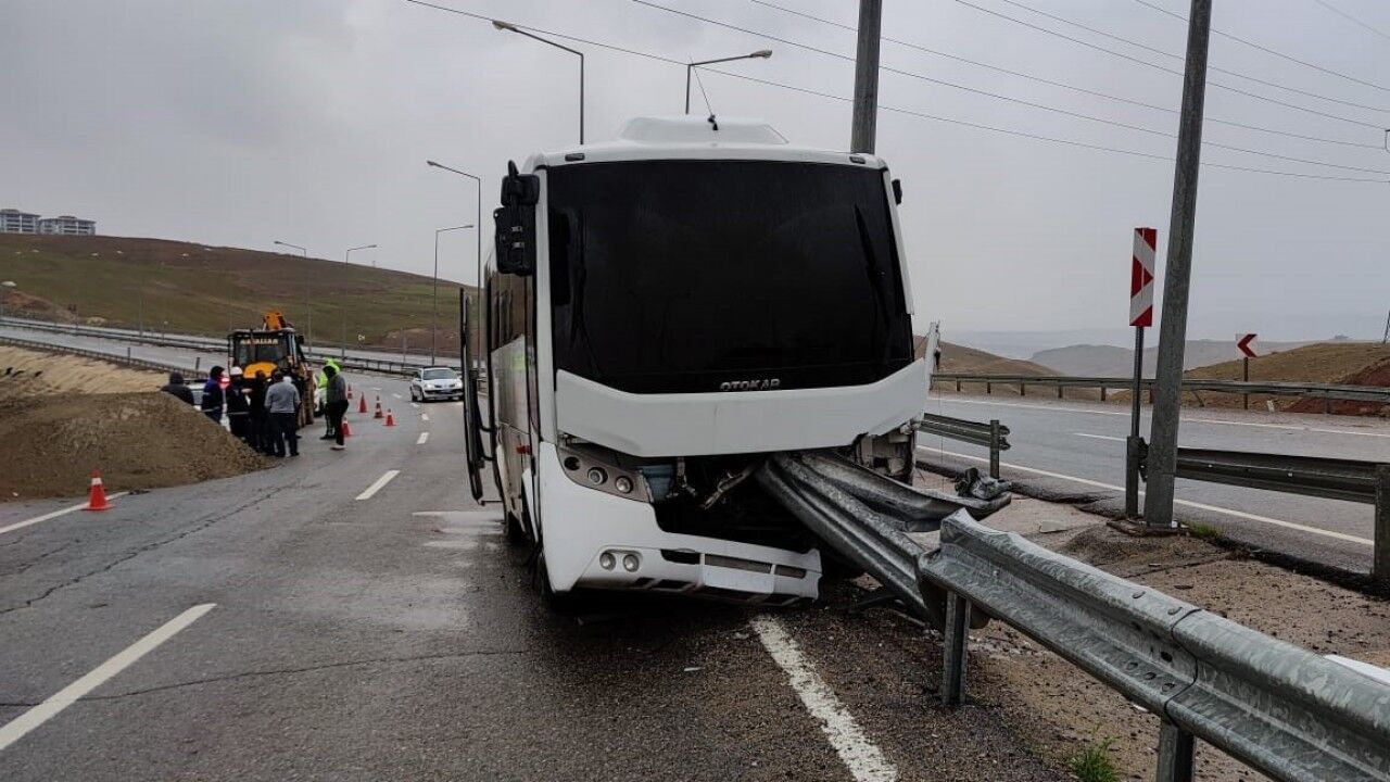 Siirt’te çevre yolu kavşağında bariyerlere saplanan polis otobüsünde maddi hasar oluştu.