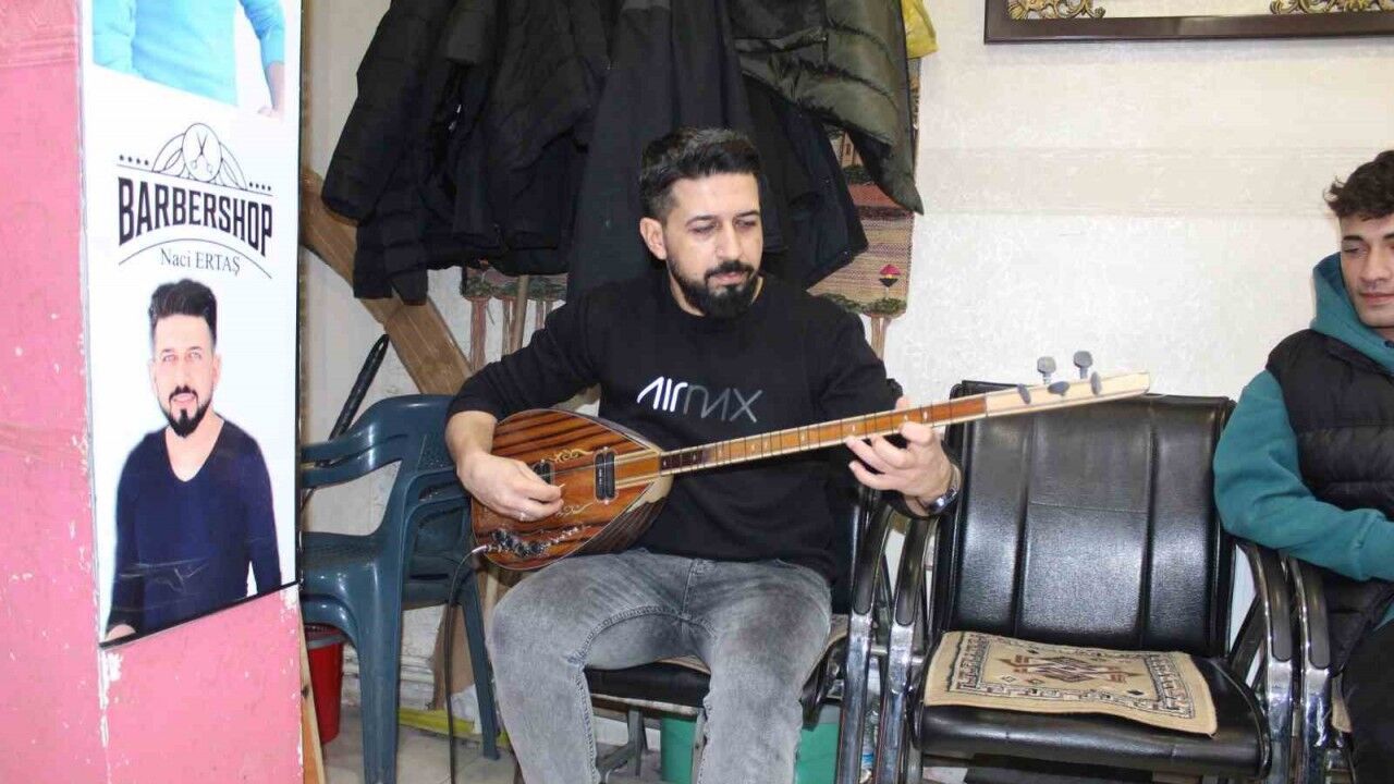 Siirt’te bir berber iş yerine gelen vatandaşları hem tıraş ediyor, hem de sazıyla gönüllerine dokunuyor.