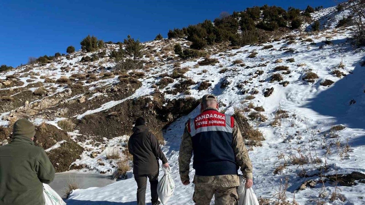Siirt Doğa Koruma ve Milli Park Müdürlüğü ile İl Jandarma Komutanlığına bağlı ekipler yaban havanları için doğaya 750 kilo yem bıraktı.