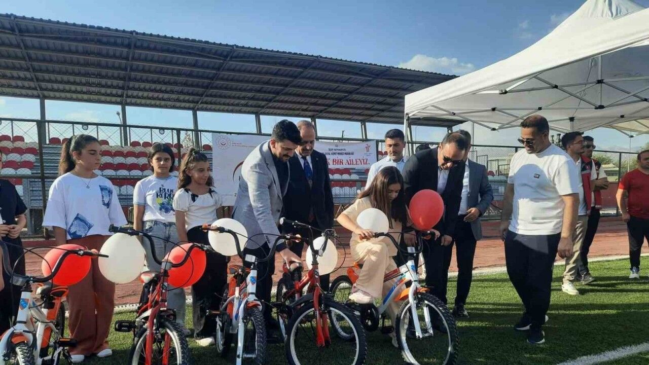 Silopi ilçesinde sosyal ve ekonomik destek programından faydalanan başarılı ortaokul öğrencileri, eğitimdeki gayretlerinin karşılığını bisiklet hediyesiyle aldı. İlçe stadında düzenlenen törene Silopi Kaymakamı Çağlar Partal ve İlçe Sosyal Hizmetler Müdürü Yavuz Şanlı katıldı. Kaymakam Partal, 18 öğrenciye bisikletlerini tek tek takdim ederek başarılarını kutladı.