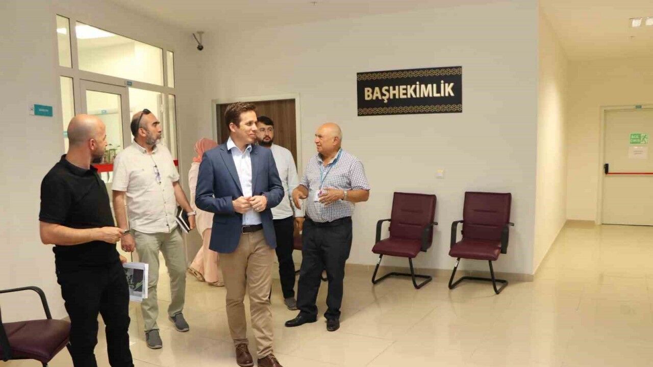 Şaphane ziyaretinde İlçe Devlet Hastanesi’nde açılacak olan 5+1 cihaz kapasiteli diyaliz ünitesi için devam eden tadilat hakkında hastane yöneticilerinden bilgiler alındı.