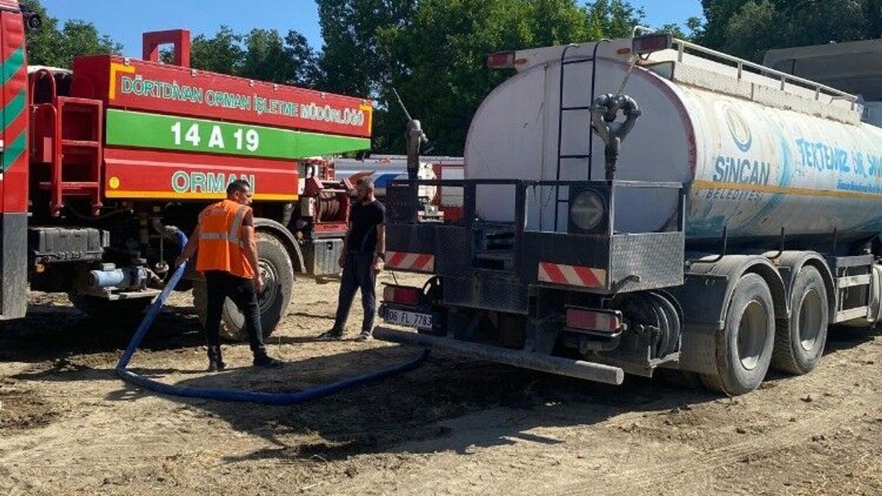 Yangın söndürme çalışmalarının aralıksız sürdüğü bölgede, Sincan Belediyesi’nin gönderdiği su tankerleri özellikle alevlerin kontrol altına alınmasında görevli ekiplere destek oldu.