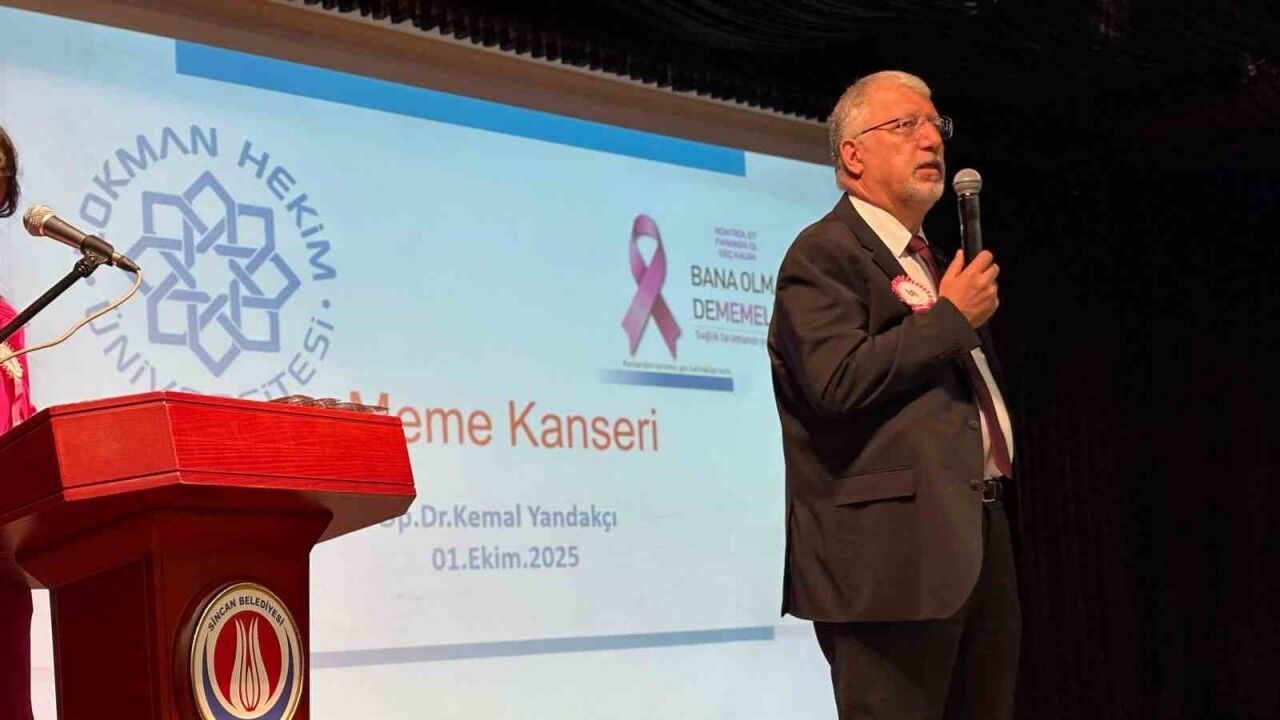 Sincan Belediyesi, ‘1-31 Ekim Meme Kanseri Farkındalık Ayı’ kapsamında Lale Konferans Salonu’nda meme kanseri ile ilgili bilgilendirme toplantısı gerçekleştirdi. Programa Lokman Hekim Hastanesi’nde görevli Prof. Dr. Vakkas Korkmaz ve Uzm. Dr. Kemal Yandakçı katıldı. Programın açılış konuşmasını yapan Sincan Belediye Başkanı Murat Ercan’ın eşi Emine Ercan, "Dilimizde yer edinen her şeyin başı sağlık söylemi, aslında sağlığımıza ne kadar çok önem verdiğimizin göstergesi. Ekim ayı, Meme Kanseri Farkındalık Ayı. Erken teşhis hayat kurtarır diyoruz. Lütfen taramalarımızı düzenli şekilde yaptıralım. Bu hepimiz için son derece önemli" dedi.