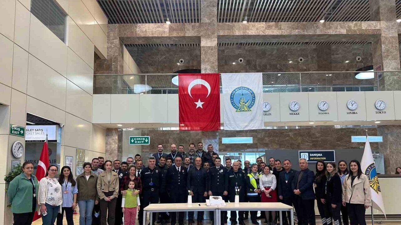 Kutlama programı kapsamında Türk Polis Teşkilatı’nın 180’inci kuruluş yıl dönümüne özel hazırlanan pasta Emniyet mensupları ve havalimanı personelinin katılımıyla kesildi.