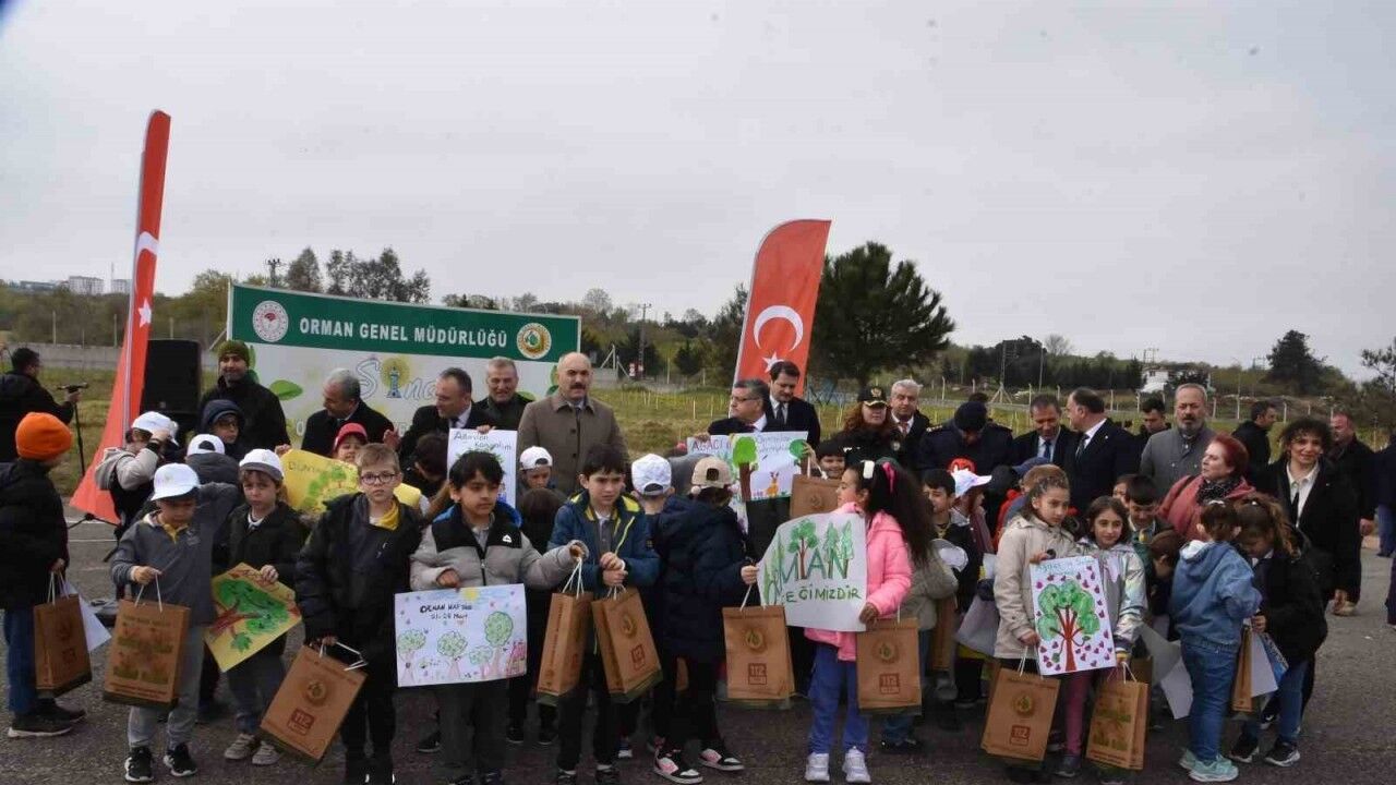 Sinop Havalimanı’nda düzenlenen etkinlikte çok sayıda fidan toprakla buluştu. Etkinliğe katılan İstiklal İlkokulu öğrencileri, kendi çizdikleri doğa temalı resimlerle etkinliğe renk kattı. "Orman geleceğimizdir", "Orman bizim yuvamız", "Ağacı sev", "Nefesi koru" yazılı resimleri taşıyan minikler, çevre bilinci mesajı verdi.
