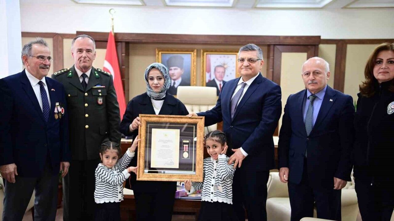 Sinop Valisi Mustafa Özarslan, Şehit Piyade Sözleşmeli Er Çağatay Erenoğlu’nun ailesine Cumhurbaşkanı Recep Tayyip Erdoğan tarafından tevdi edilen Devlet Övünç Madalyasını takdim etti.
