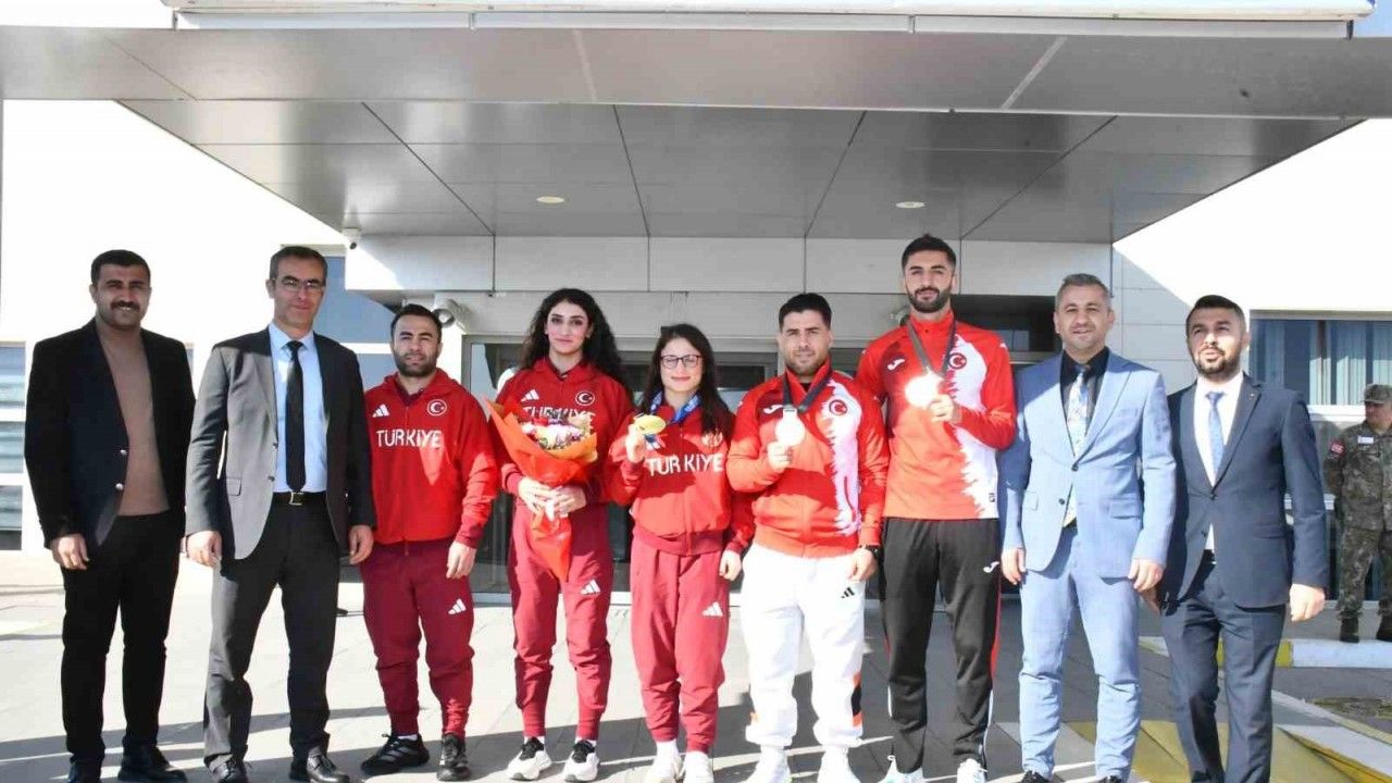 Avrupa şampiyonu, dünya ikincisi ve olimpiyat dereceleri bulunan Şırnaklı sporcular için Şırnak Şerafettin Elçi Havalimanında karşılama töreni düzenlendi.