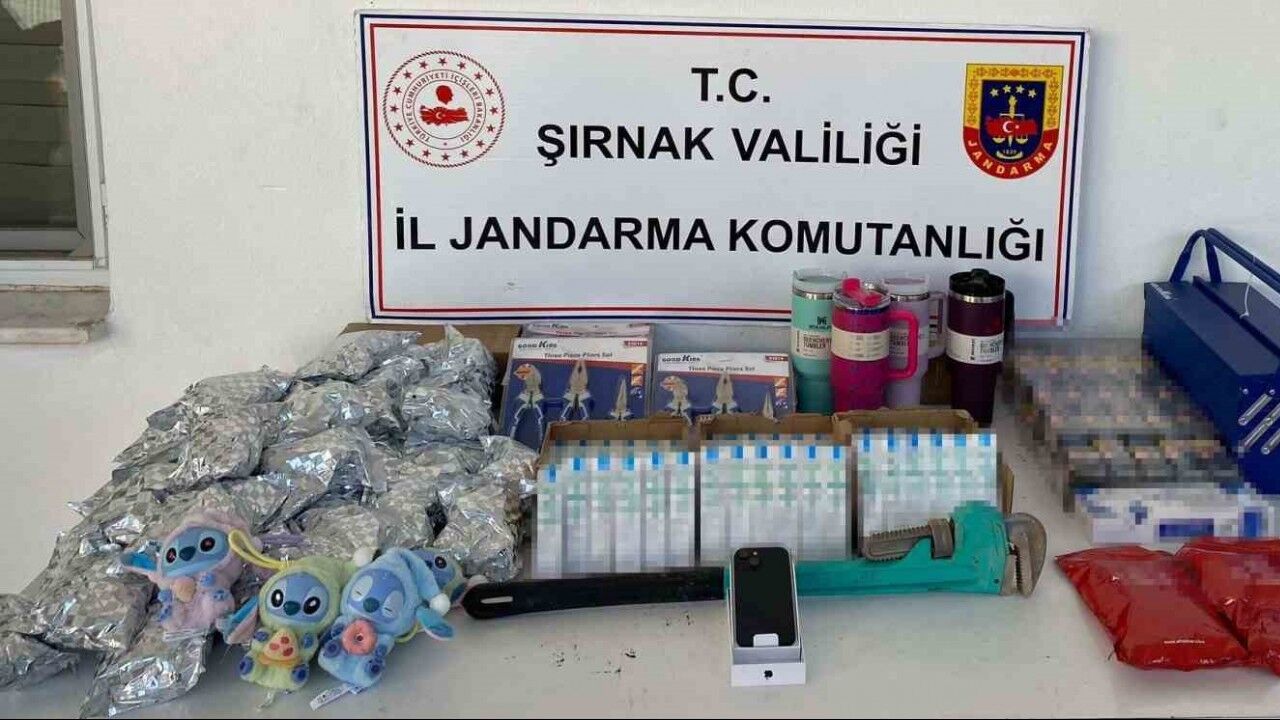 Şırnak İl Jandarma Komutanlığı KOM ekipleri 15-21 Eylül tarihleri arasında il genelinde 101 şahsa ait ev, eklenti ve araçlarda yapılan aramalarda gümrük kaçağı olduğu tespit edilen çok sayıda ürün ve uyuşturucu madde ele geçirildi. Jandarma KOM ekipleri tarafından 101 şüpheli şahsa ait olan ev, eklenti ve araçlarda yapılan aramalarda gümrük kaçağı olduğu değerlendirilen, 17 gram uyuşturucu madde, 2 adet uyuşturucu kullanma aparatı, 8 litre alkollü içecek, 51 adet cep telefonu, 25 bin 960 adet bandrolsüz sigara, 50 kilo tütün, 565 adet puro, 210 adet sigara mentolü, 91 kg çay, 2 bin 915 adet muhtelif hırdavat malzemesi, bin 605 adet muhtelif tekstil malzemesi, 2 bin 140 adet muhtelif süs eşyası, 466 adet kozmetik malzemesi, 103 adet elektronik eşya, 499 adet muhtelif gümrük kaçağı malzeme ele geçirildi.
