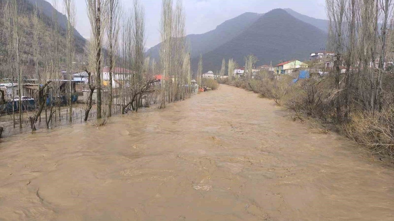 Şırnak'ta dün akşamdan beri etkili olan şiddetli gök gürültülü sağanak yağış sonrası Habur Çayının debisi yükseldi. Tehlike çanları çalan dere yatağı evlere kadar ulaştı.