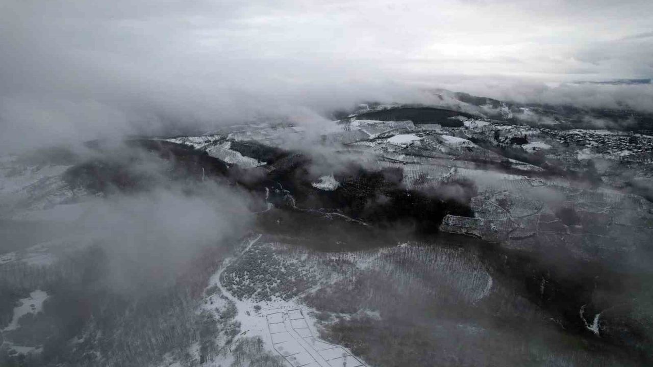 Meteoroloji Genel Müdürlüğü'nün uyarılarının ardından Sakarya'da etkili olan kar yağışıyla birlikte yüksek kesimlerde oluşan görüntü kendine hayran bıraktı.