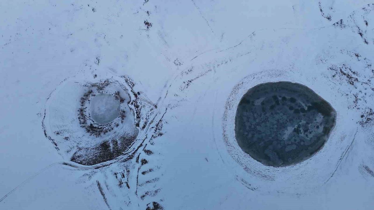 Sivas'ta yan yana bulunan ve göze benzeyen Ağgöl ve Karagöl soğuk havanın etkisiyle dondu. Her mevsim ayrı bir manzara sunan göllerde kartpostallık görüntüler oluştu.