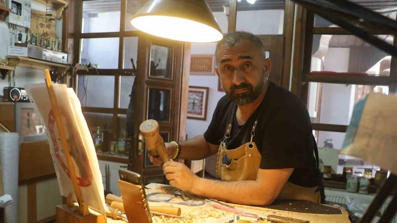 Sivas’ta ahşap oyma ustası Süleyman Daştan, kolay işleme yapılabilmesi nedeniyle yurt dışından getirttiği Afrika kökenli ağaçlara Sivas’ın tarihi motiflerini işliyor.