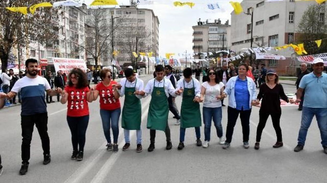 Konuşmaların ardından, alana gelen yaklaşık 350 katılımcı, davul zurna eşliğinde halaylar çekerek 1 Mayıs'ı kutladı. Kutlama alanına yakın künefecide çalışan işçiler de 'Yaşasın 1 Mayıs' yazılı tatlı getirerek halay çekti. Miting alanı ve yürüyüş güzergâhında geniş güvenlik önlemi alan Emniyet Müdürlüğü ekipleri 'drone' ile de görüntü çekti.
