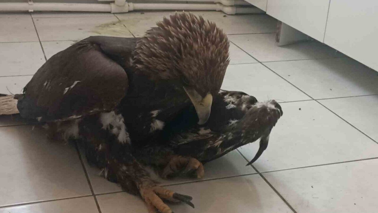 Sivas’ın Gürün ilçesinde oyun oynayan çocuklar yaralı kaya kartalı buldu.