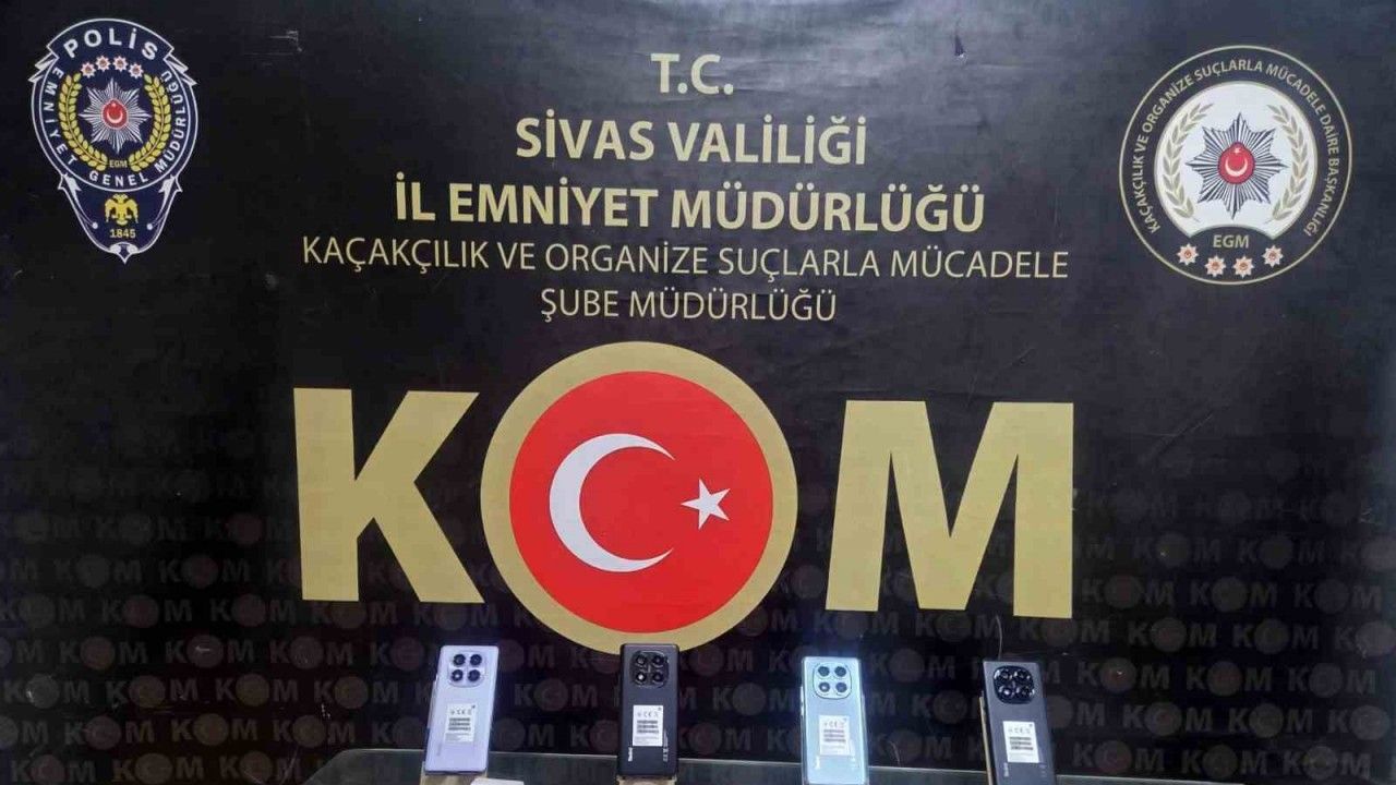 Sivas’ta polis ekiplerince düzenlenen operasyonda gümrük kaçağı tütün ile cep telefonları ele geçirildi.