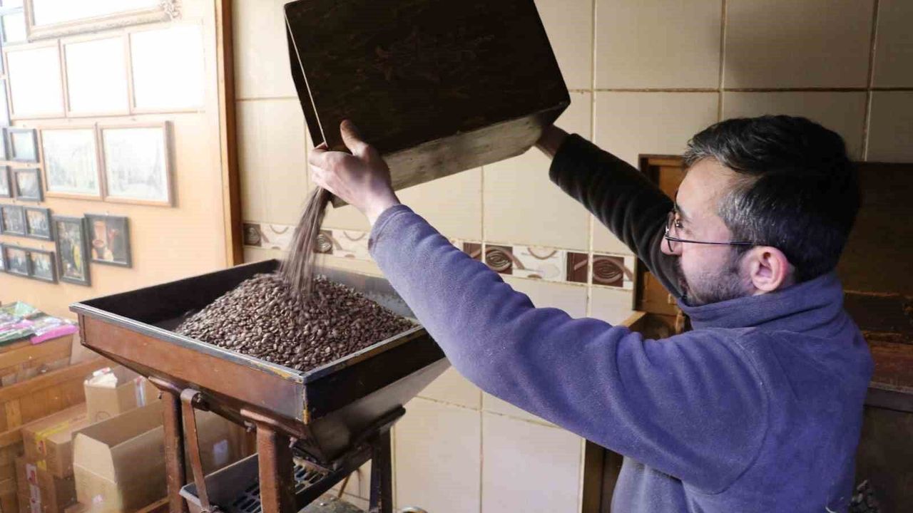 Sivas'ta bir asırlık işletmede asırlık kavurma makinesi ve taş değirmenle, kahve üretimi geleneksel yöntemlerle sürdürülüyor.
