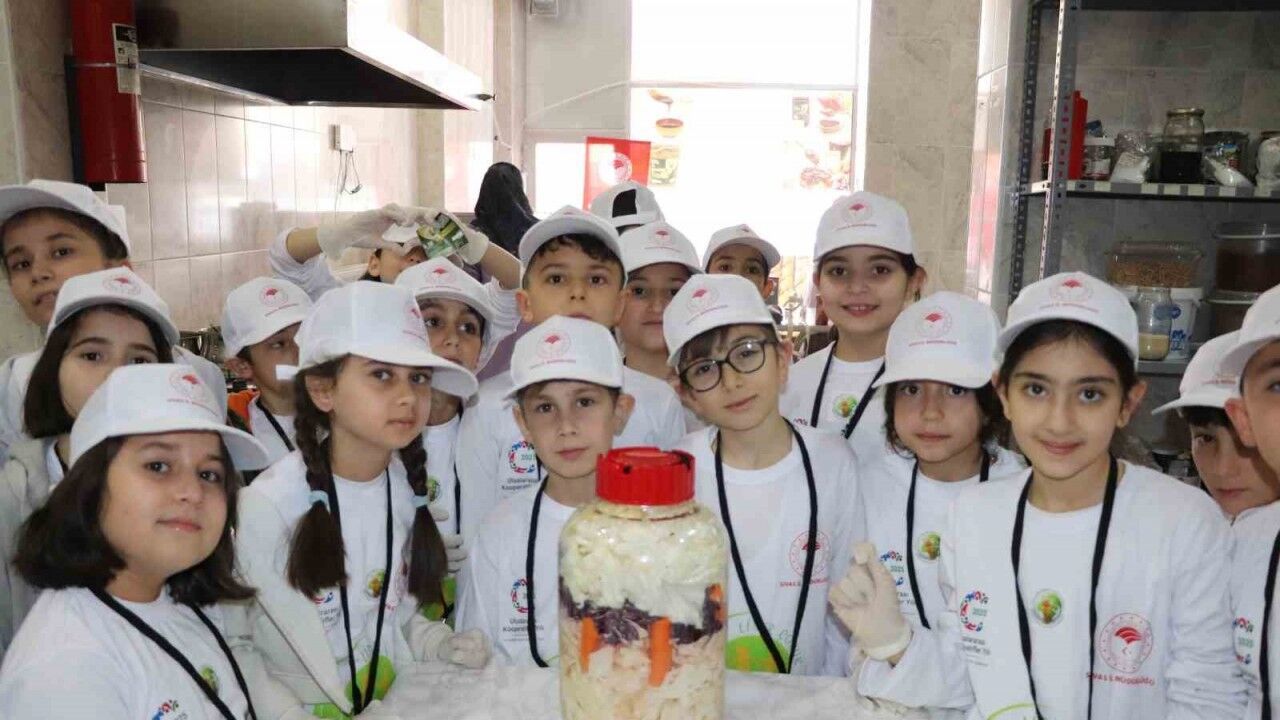 Sivas’ta ilkokul öğrencileri "Lider Çocuk Tarım Kampı Programı" kapsamında tarhana paketleyip turşu yapmayı öğrendiler.