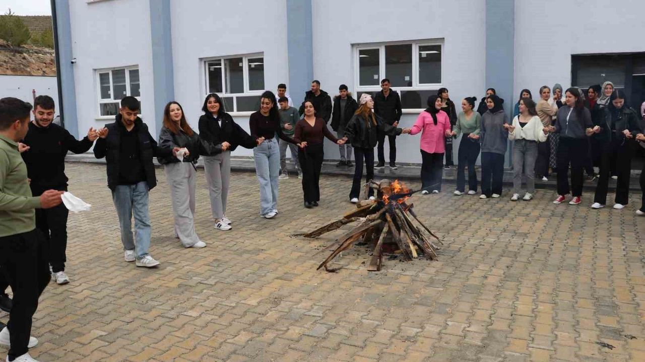 Sivas'ın Gürün ilçesinde bulunan Gürün Meslek Yüksekokulu'nda Nevruz Bayramı coşkuyla kutlandı. Ateş yakıp üzerinden atlayan öğrenciler, halay çekti.