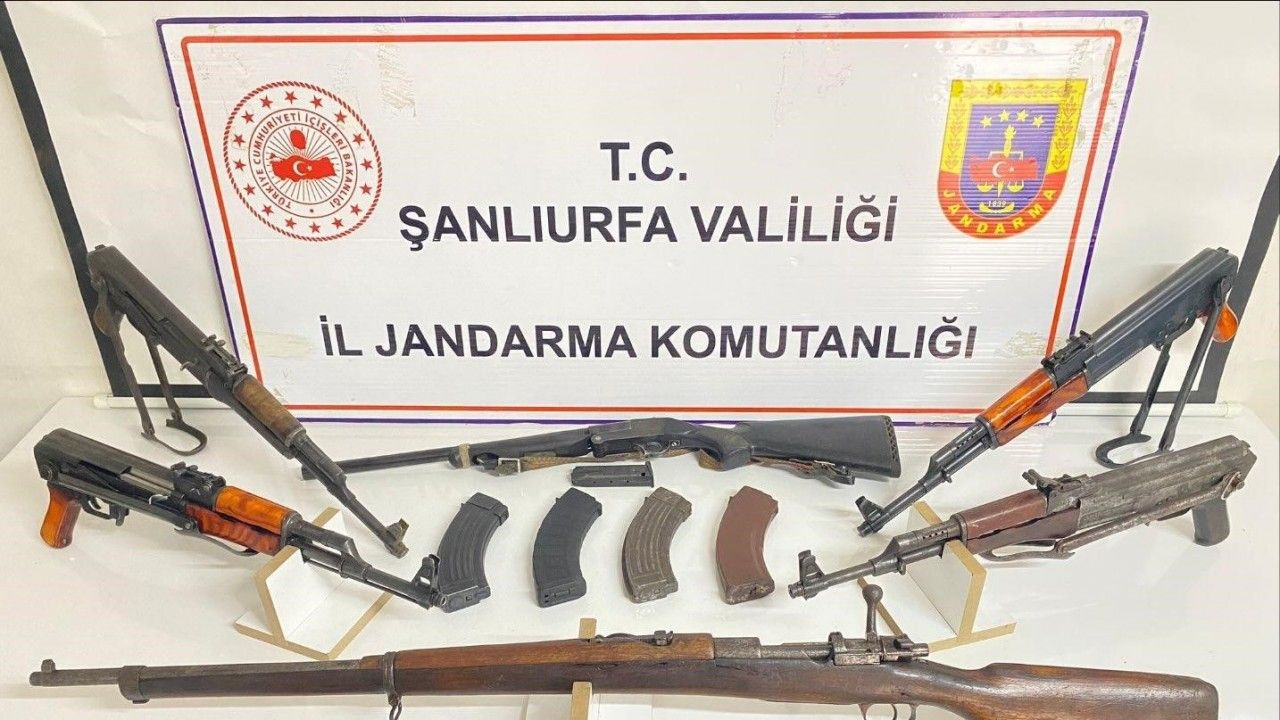 Şanlıurfa’nın Siverek ilçesinde JASAT ekipleri "6136 SKM" kapsamında Bucak ve Karacadağ Jandarma Karakol Komutanlığı tarafından 4 adrese düzenlenen operasyonda çok sayıda silah ele geçirildi.