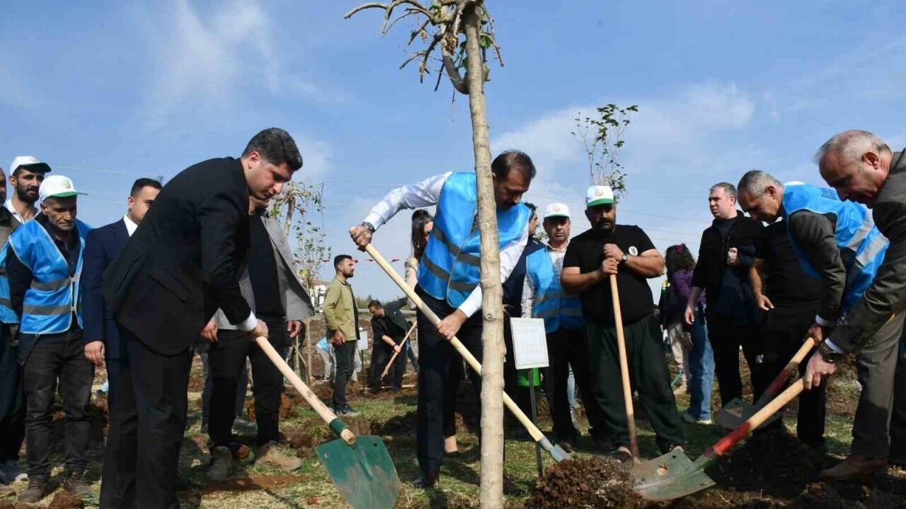 Şanlıurfa’nın Siverek ilçesinde 11 Kasım Milli Ağaçlandırma Günü dolayısıyla düzenlenen etkinlikte yüzlerce fidan toprakla buluşturuldu.